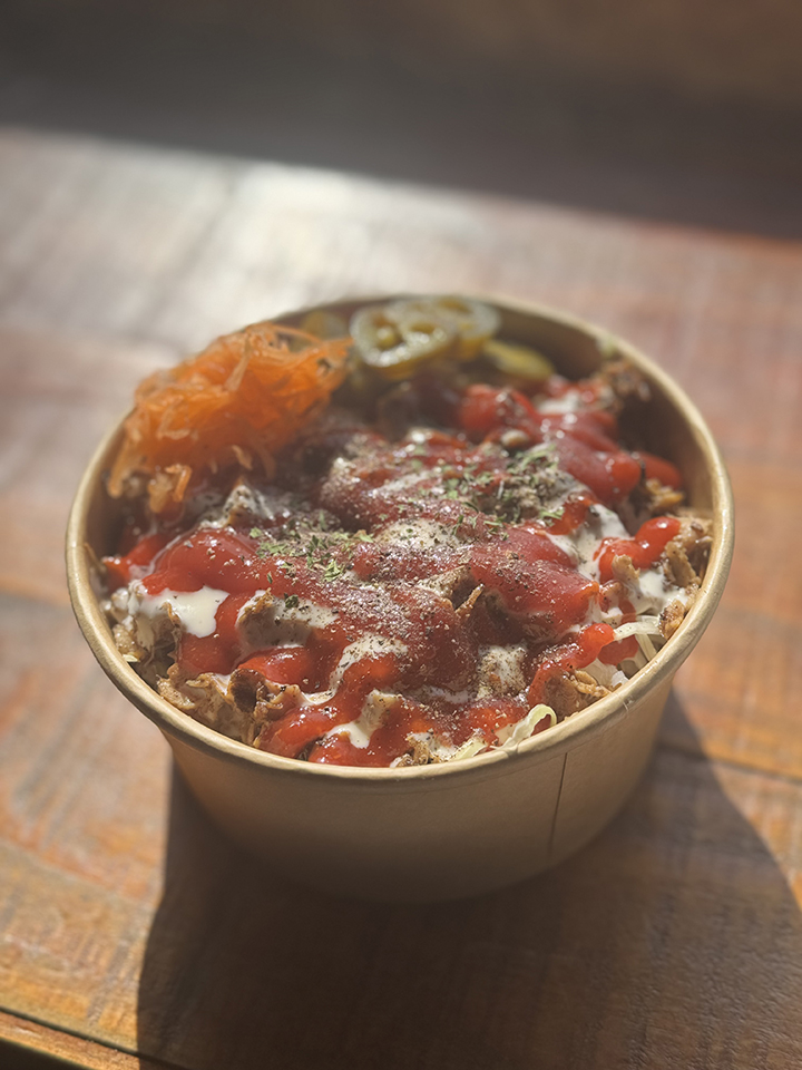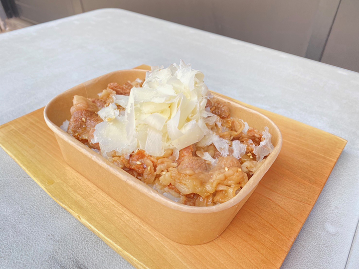 焼肉屋さんが作る美味しい牛丼に、ふわふわ削りたてのチーズをたっぷり乗せた映えメニュー!