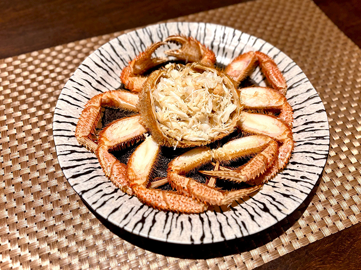 新鮮な毛蟹を食べやすくむき身にして、甲羅詰めにしてあります。