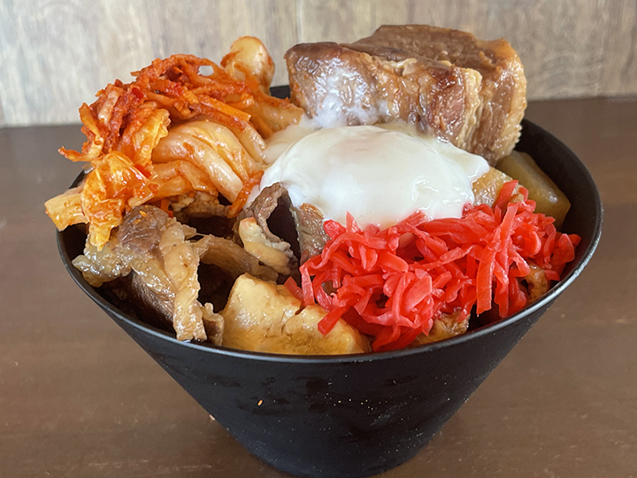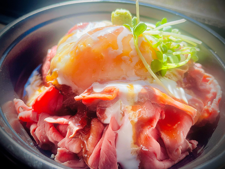 焼肉屋さんが作る美味しい牛丼に、ふわふわ削りたてのチーズをたっぷり乗せた映えメニュー!