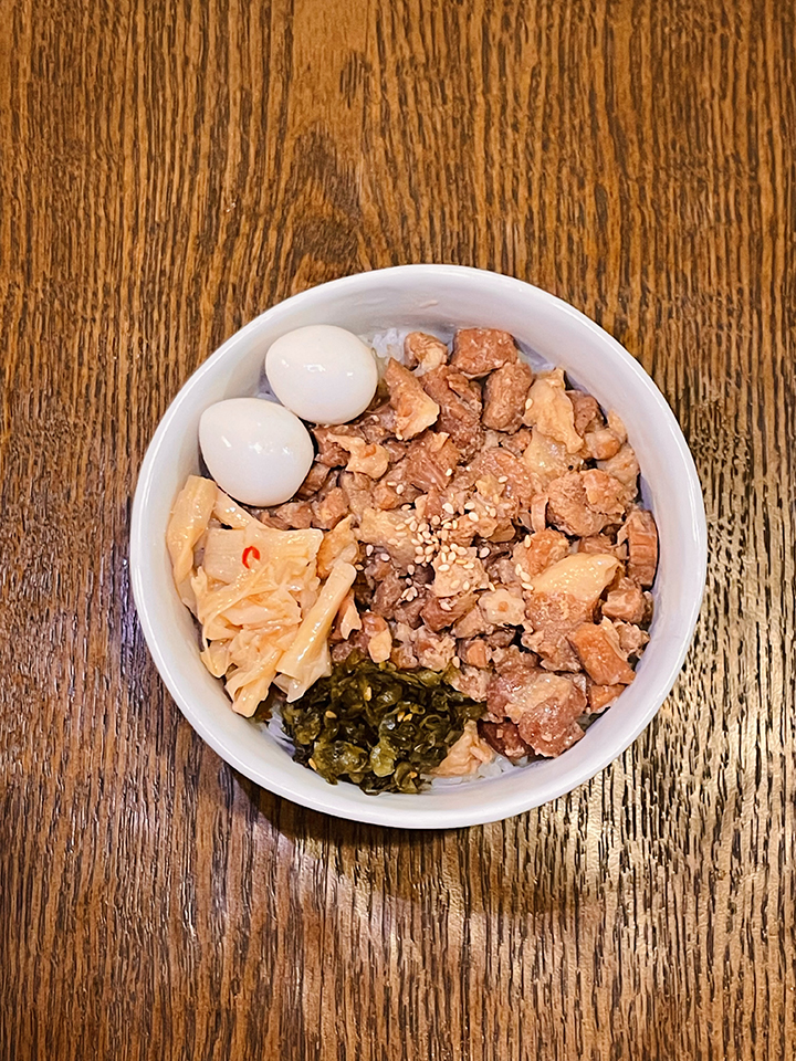 渡邊凌磨の炭火鶏焼き(東松山の辛味噌)を丼ものにしました!コリコリとした食感が特徴の鶏ハラミとご飯がよく合います!