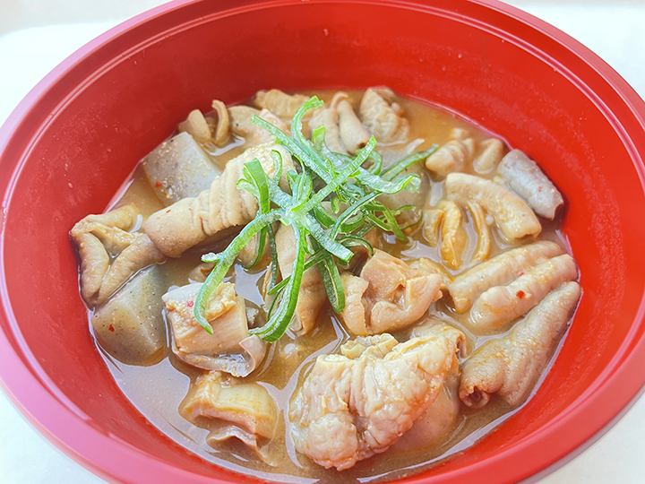 やわらか豚白もつと生芋こんにゃくをじっくり蒸かしてコトコトおいしく仕上げました。