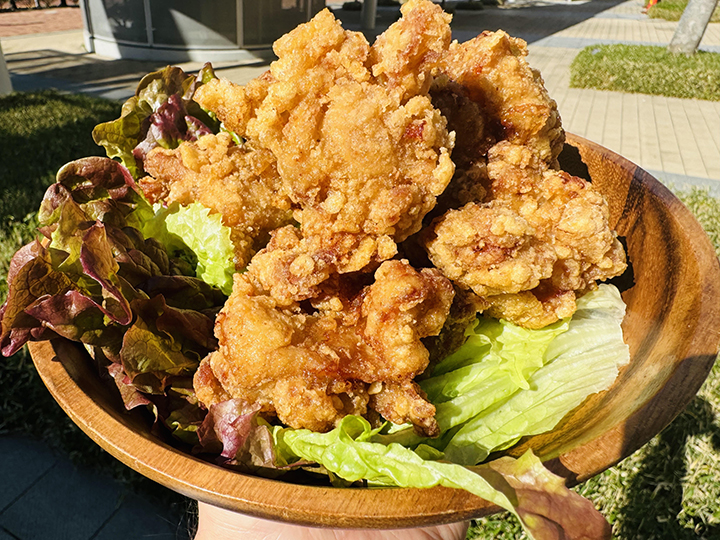 から揚げはもも肉を使用し九州の調味料で味付け、2度揚げで仕上げていますのでカラッとジューシー、大分本場の唐揚げを楽しんで頂けるように提供していきます。