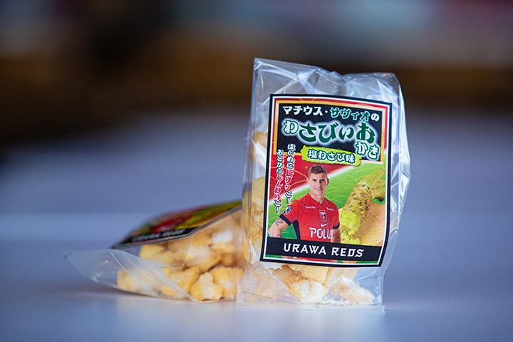 ピリッとしたわさびの風味と香ばしいおかきの食感がクセになる逸品。まるでサヴィオ選手のプレースタイルのように、鋭く刺激的ながらも、一度食べたらやみつきになる美味しさです。
