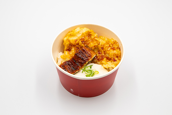 大分県名物【とりてん】と浦和の名物【うなぎ】をのせた贅沢丼ぶりです。