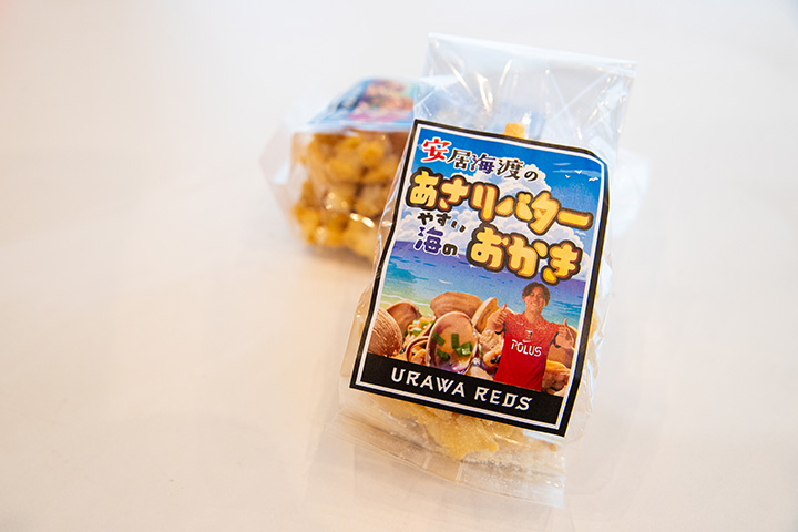 「安居海渡のあさりバターおかき」は、濃厚なバターのコクとあさりの旨みが合わさった贅沢な味わい。