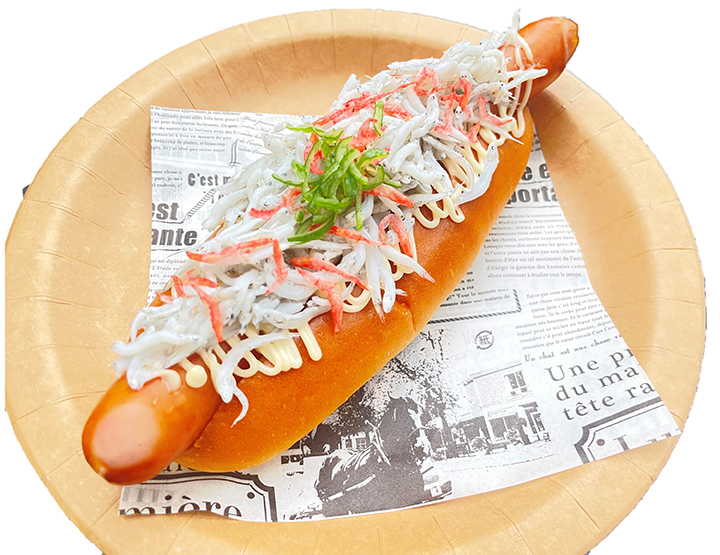 ジューシーなロングウインナーに、ふんわり食感のしらすと桜えびをたっぷりトッピング。
